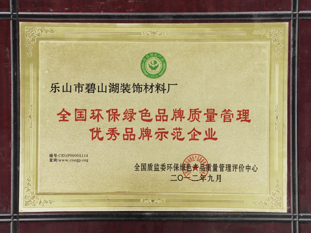 全国环保绿色品牌质量管理优秀品牌示范企业